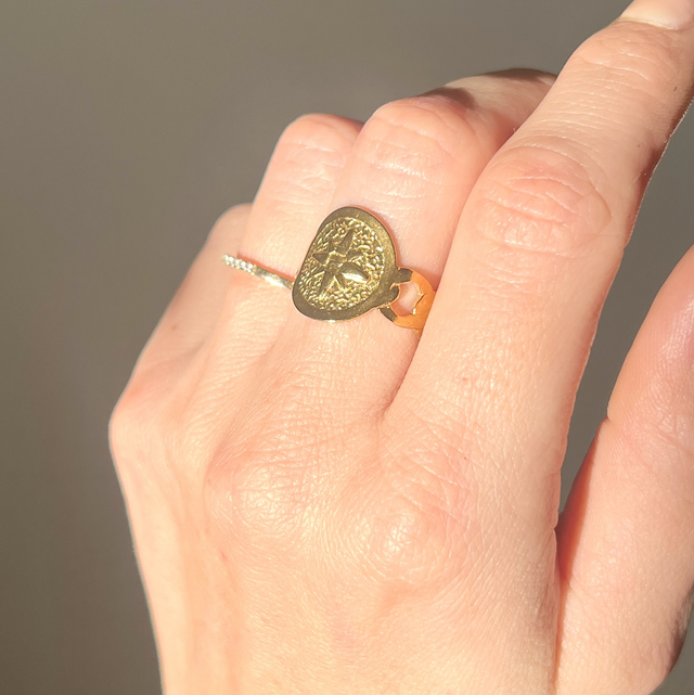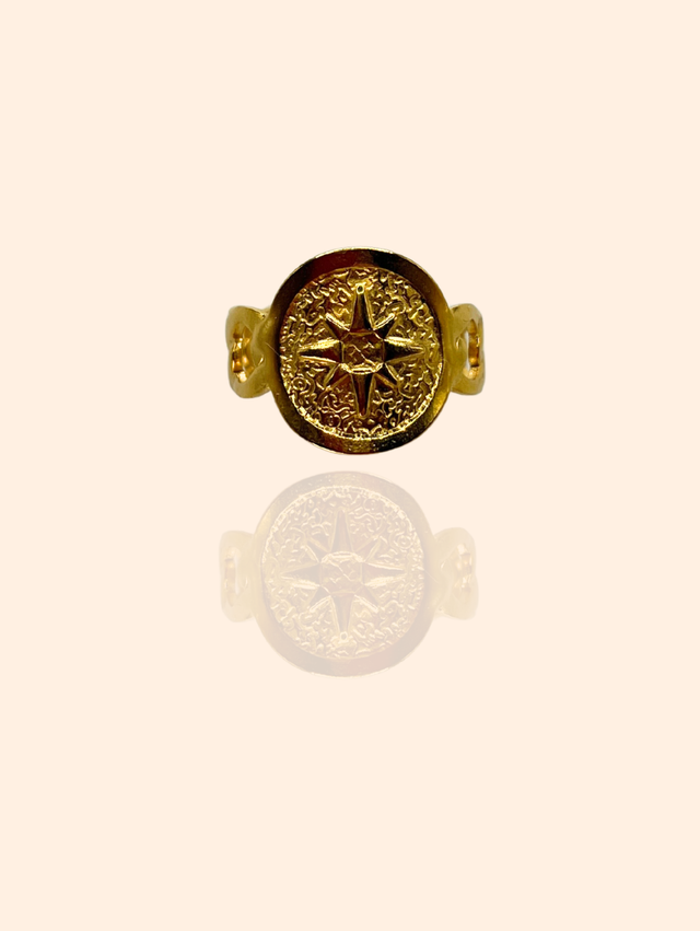 Dorée, délicate et pleine de sens... cette bague boussole symbolise la direction, la force et la confiance en ton propre chemin.
