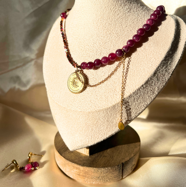 Un coffret pensé comme un ensemble évident : une paire de boucles d’oreilles et un collier qui se répondent naturellement. Des lignes sobres, des détails justes, et une élégance facile à porter au quotidien.