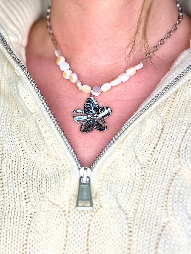 Élégance et douceur naturelle se rencontrent dans le collier "Fleur d’Argent".
